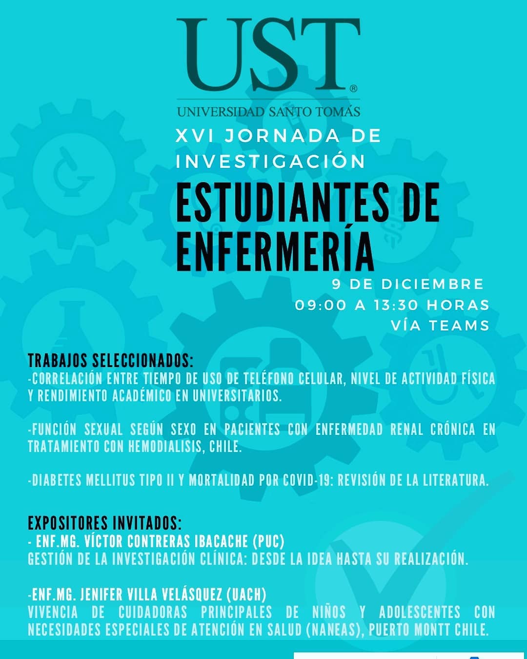 En el mes de diciembre 2020 nuestra docente Jenifer Villa, fue partícipe como expositora en XVI Jornada de Investigación Estudiantes de Enfermería, espacio donde dio a conocer su investigación titulada “Vivencia de Cuidadoras principales de niños y adolescentes con necesidades especiales de atención de salud (NANEAS), Puerto Montt, Chile.