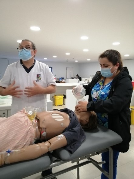 Es en este contexto y gracias a que el Centro de Diálisis Municipal de Puerto Montt, ha permitido la participación de internas de Enfermería, de la Universidad Austral de Chile sede Puerto Montt, en el proceso de apertura del centro, nuestras internas; Carla Aburto y Valeria Araya, han querido aportar a través de la elaboración y ejecución de un taller de Reanimación Cardiopulmonar, el cual se ha desarrollado en una primera parte por la presentación teórica de los conceptos y protocolos más importantes, para luego realizar un taller práctico en donde la escuela de enfermería dispuso de todos los implementos necesarios; fantomas de cuerpo entero, monitor y desfibrilador cardiaco, insumos para manejo de vía aérea avanzada, los cuales son utilizados por nuestros estudiantes en sus prácticas en los laboratorios de simulación de nuestra escuela, con la finalidad de darle mayor realidad al desarrollo del taller y lograr un aprendizaje significativo en el personal. Todo esto guiado por las internas y apoyado por el docente Francisco Zúñiga Madrid, quien pertenece al equipo docente que imparte la asignatura de Atención de enfermería en paciente crítico.